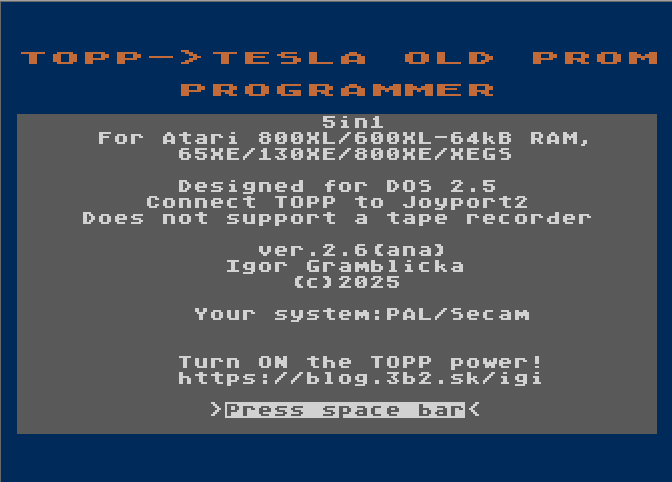 TOPP – Tesla Old PROM Programmer for Atari 8bit. Software V.2.6. Part13.